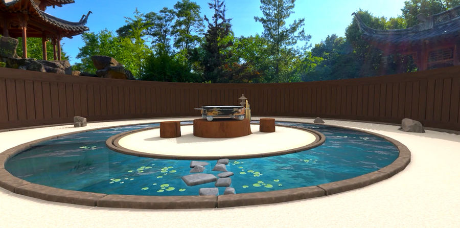 Fully immersive VR Metaverse means in our Zen garden you even hear the water trckling out of the traditional bamboo fountain